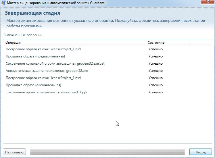 По нажатию кнопки [Продолжить] появится окно завершающей стадии защиты ПО.