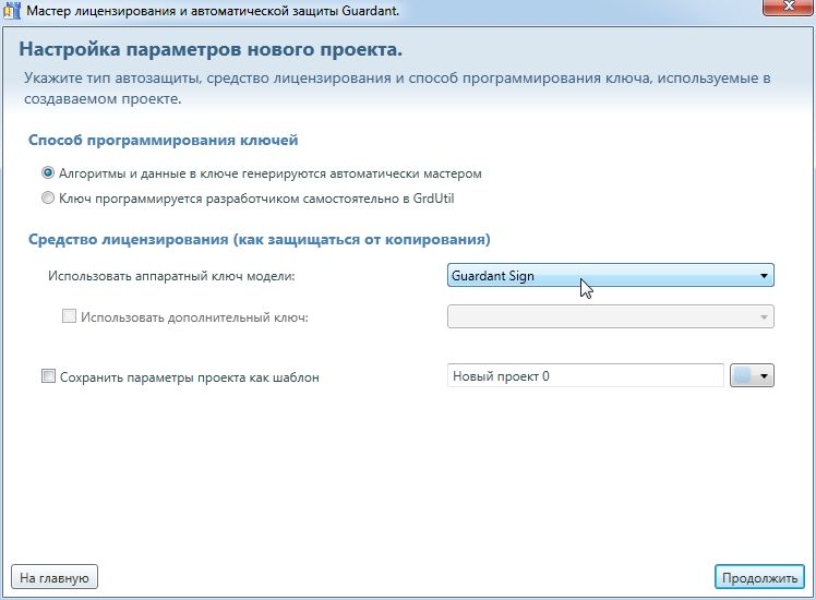 Поскольку данное описание является ознакомительным в предложенном меню нам необходимо только указать модель используемого ключа, выбираем необходимую модель и нажимаем [Продолжить]