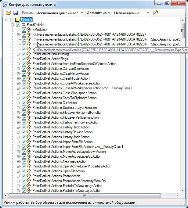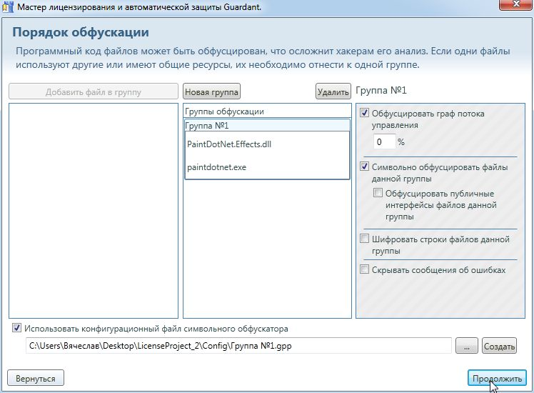 По нажатию кнопки [Продолжить] откроется окно обфускации, в котором вы сможете разделить защищаемую сборку на группы, а так же воспользоваться конфигурационной утилитой обфускации.