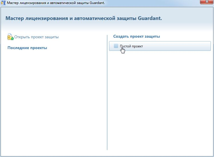 В окне мастера в разделе «Создать проект защиты» выбираем пункт «Пустой проект»