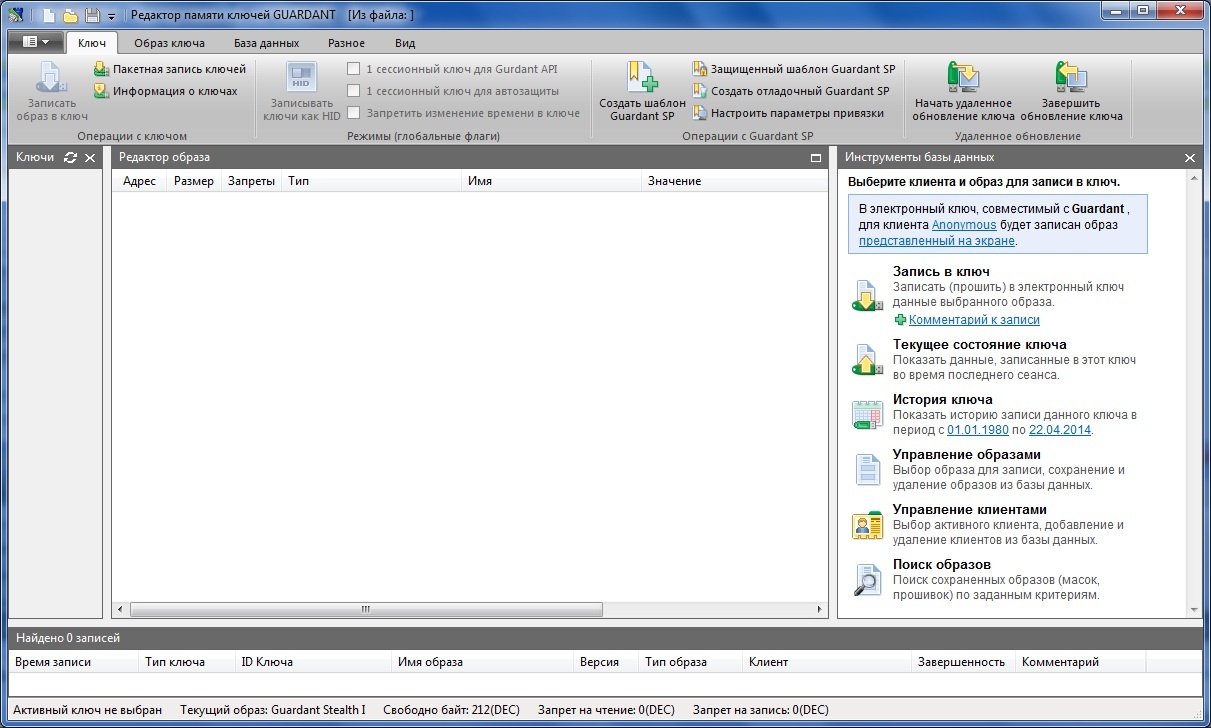 Для успешной работы с утилитой к компьютеру должен быть подсоединен любой электронный ключ Guardant с заданными кодами доступа.