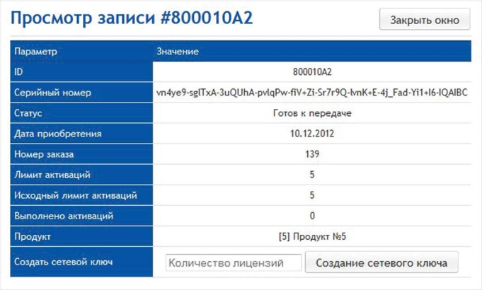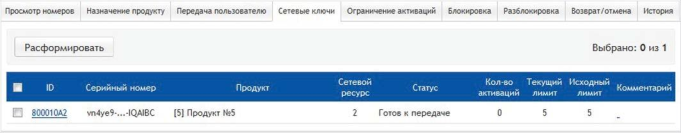После создания сетевого ключа он становится доступен во вкладке «Сетевые ключи» на сервере активации.