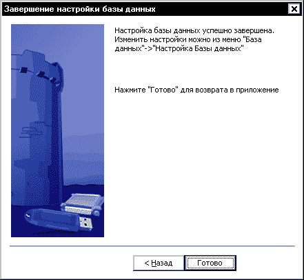 3. После указания файла базы данных появляется последняя страница диалога. Для завершения процедуры настройки базы данных нажмите на кнопку [Готово]: