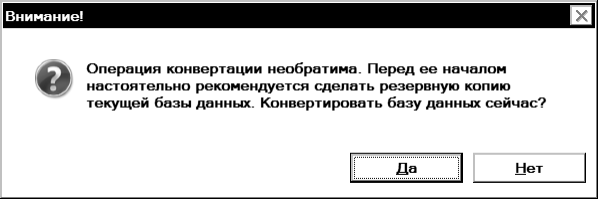 По нажатию на кнопку Да появляется диалог конвертации: