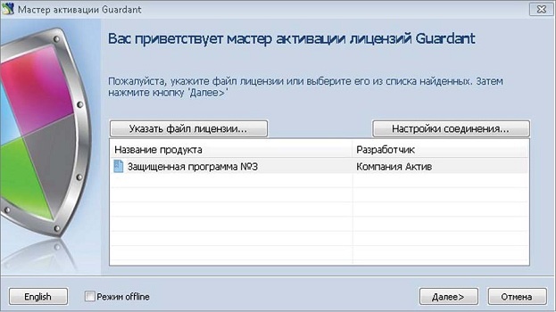 Если в списке Мастера активации отсутствует защищенный продукт, необходимо указать путь к GRDVD-файлу, нажав на кнопку «Указать файл лицензии».