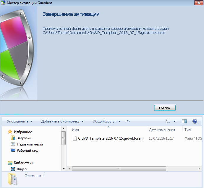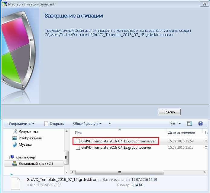 В результате будет сформирован еще один файл, который нужно перенести на целевой компьютер для завершения активации: