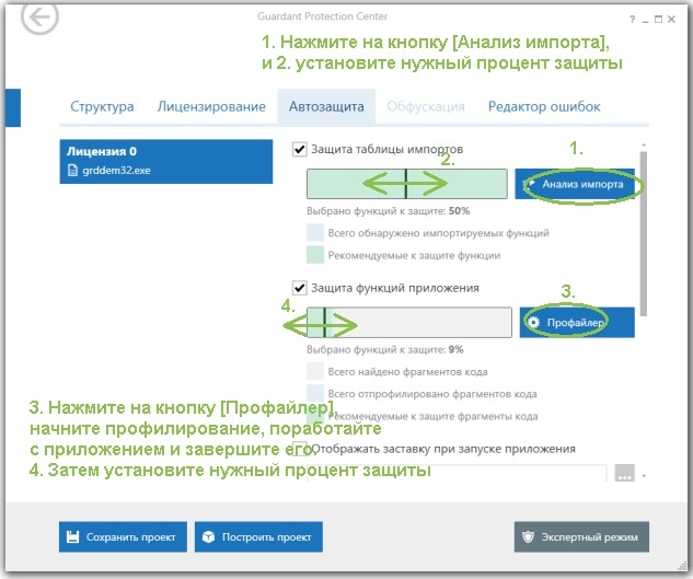 По итогам профилирования GPC выбирает подходящие для защиты участки кода. В профессиональном режиме можно управлять отдельными параметрами профилирования, в частности, устанавливать процент защищаемых функций: