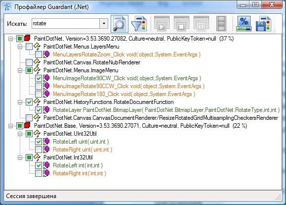 Например, на скриншоте выше показаны результаты поиска по слову rotate. Если после автозащиты с параметрами по умолчанию было замечено, что в Paint.NET функция Повернуть изображение на 90 градусов стала работать гораздо медленнее, то легко найти ее и снять отметку Защищать.