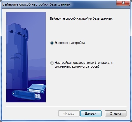 1. На первой странице Мастера выберите тип настройки базы данных Экспресс-настройка: