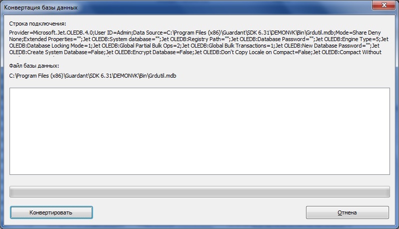 Для конвертации базы данных GrdUtil из командной строки служит команда: [путь]GrdUtil.exe -dbConvert