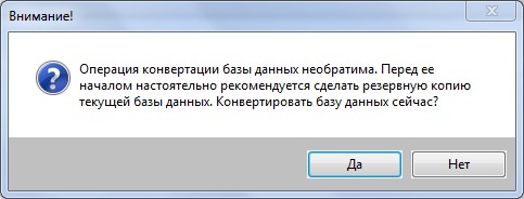 Чтобы начать процесс конвертации, нажмите на кнопку Да. По успешном завершении конвертации будет выдано соответствующее сообщение.