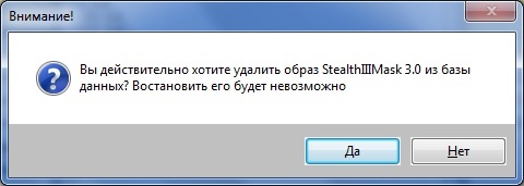 После нажатия кнопки [Да] в диалоге подтверждения шаблон образа будет удален из базы данных. - Если удаляемый шаблон образа не использовался для программирования ключей, то образ можно удалить сразу же, после вывода на экран формального диалога подтверждения на удаление образа (см. выше).