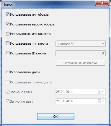 Флаг Использовать ID ключа | Вывести в результатах поиска все прошивки для ключа с заданным ID. Идентификатор считывается из ключа, подсоединенного к порту, либо вводится вручную в поле, которое становится доступным после установки флага |