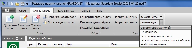 Т. о., после установки новых значений запретов в Редакторе образа и записи образа в ключ, память ключа полностью обновляется. При этом выполняется целая цепочка операций Guardant API: