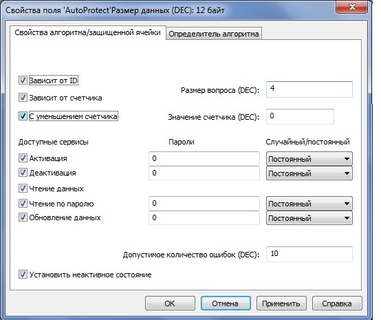 Диалог Свойства алгоритма служит для определения свойств создаваемого алгоритма: задания комбинации флагов, размера вопроса, а также набора сервисов для алгоритмов.