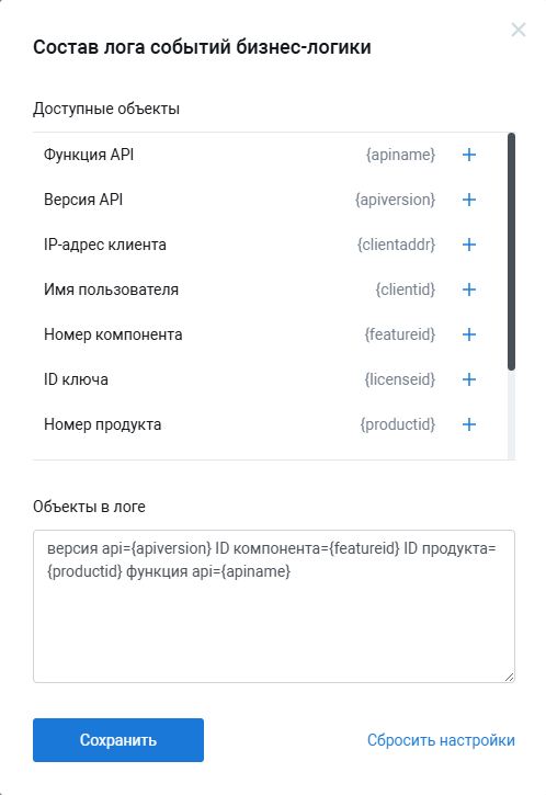 | apiname | {apiname} | Функция API, вызванная при работе пользователя с сетевой лицензией |