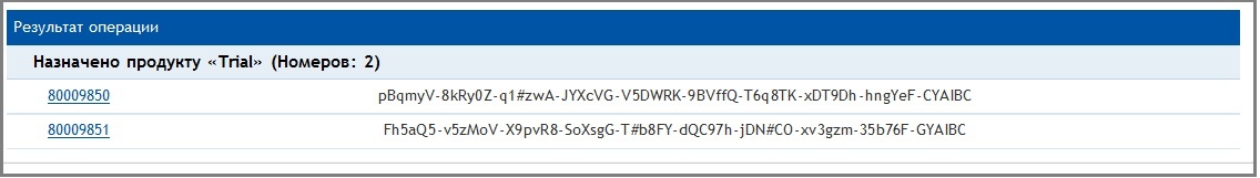 Каждый серийный номер должен быть однозначно ассоциирован с продуктом. При передаче серийных номеров разработчику они автоматически ассоциируются с продуктом, который назначен продуктом по умолчанию для данного пользователя.