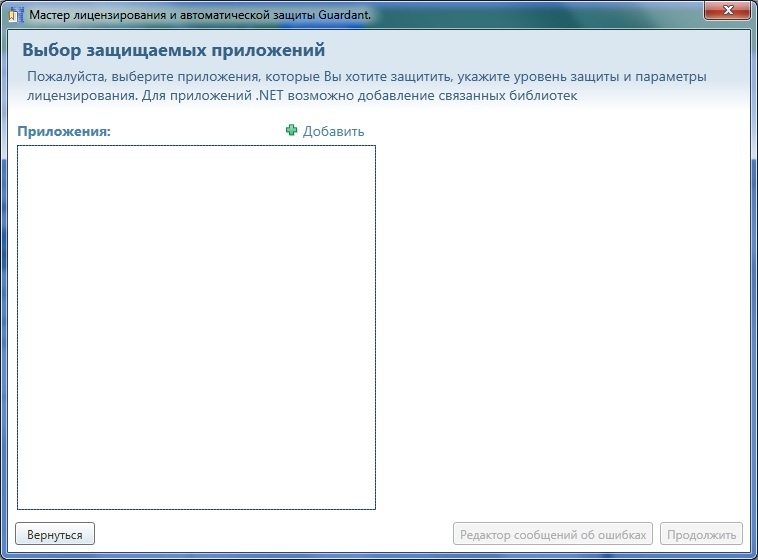В диалоге Выбор защищаемых приложений задается список защищаемых приложений, уровень защиты и параметры лицензирования. Для приложений .NET возможно добавление связанных библиотек.